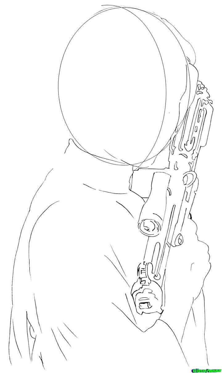 Make a rough sketch of Princess Leia or can take any other pencil drawing you have done and use this technique on it. Draw a basic head shape with an oval and a curved line through it to indicate where the nose will be and where to line up the eyes, mouth, etc. Then draw her robe and blaster. You will erase the lines as we go on.